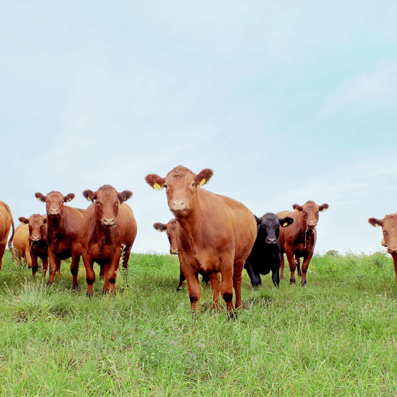 Wir halten Mutterkühe der Rassen Angus und Charolais. Im Winter zur Abkalbezeit werden die Kühe auf Stroh eingestallt. Ab dem Frühjahr grasen unsere Tiere auf den umliegenden großzügigen Weiden. In jeder Herde erfolgt die Fortpflanzung auf natürlichem Weg über Deckbullen. Auch bei der Aufzucht setzen wir auf natürliche Verfahren: die Kälber bleiben acht Monate bei ihren Eltern und werden erst als voll entwickelte Wiederkäuer abgesetzt.